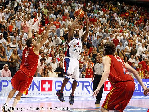 Виктор Хряпа. Правильно, именно он должен был замыкать троицу. Так и по набранным очкам, и по игре. Виктор на этом чемпионате выплеснул весь нереализованный в Чикаго игровой заряд. Возможно, чемпион Европы теперь заслужит другое отношение к себе и в НБА. Ну а в Испании Хряпа был лидером практически в той же степени, что и Кириленко с Холденом. Помимо очень своевременных трехочковых (из которых особняком стоит один, литовцам, забитый с энбиэевского расстояния на первых секундах владения мячом в очень скользкой по счету ситуации), Виктор боролся каждую секунду отведенного ему времени и в блистательной российской защите его роль была очень весома. Кроме того, он только Кириленко уступил по подборам (70 против 77), хотя далеко не центр, а про ассистам и вовсе не знал себе равных (29). Ну и издали Хряпа забил больше всех в сборной – 16 раз.