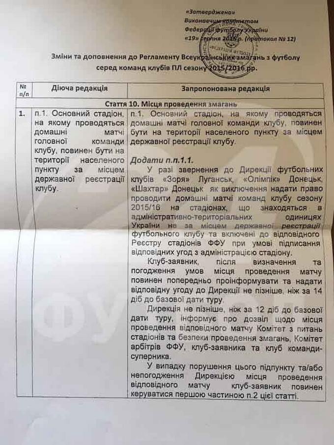 Исполком Федерации футбола Украины разрешил клубам из зоны АТО («Шахтер», «Олимпик», «Заря») принимать домашние матчи на стадионах в любых городах Украины.