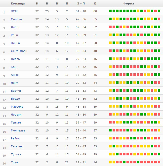 Все результаты 32-го тура: