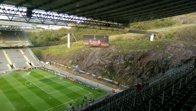 21:30. Стадион «Браги» буквально вмонтирован в скалу: