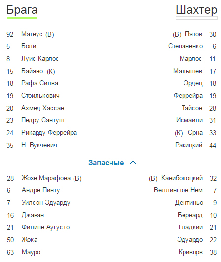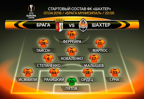 14:55. По мнению официального сайта УЕФА, «Брага» и «Шахтер» сыграют в таких составах: