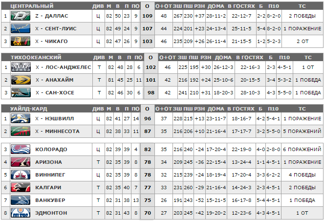 Даллас, Сент-Луис, Чикаго, Анахайм, Лос-Анжелес, Сан-Хосе, Нэшвилл, Миннесота.