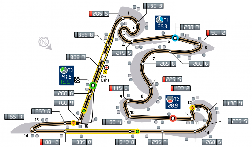 кваліфікація: 1’33.706 (2011, Себастіан Феттель) гонка: 1’32.238 (2004, Міхаель Шумахер) |