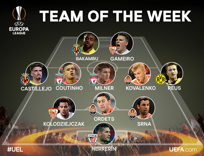 Наибольшее представительство в Команде недели по итогам ответных матчей 1/4 финала у «Шахтера», но «Ливерпуль», «Вильяреал» и «Севилья» тоже не остались внакладе.