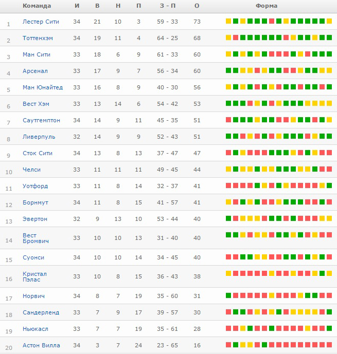 Турнирная таблица