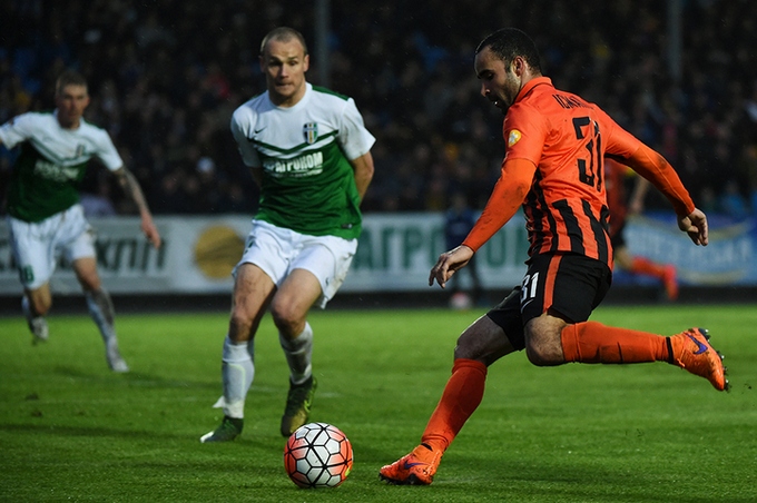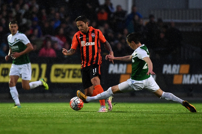 Несмотря на особенности тяжелого газона, «Шахтер» активно начал матч. К середине первого тайма казалось, что исход встречи предрешен – «горняки» постоянно атаковали, и только неточность в завершении атак помешала им открыть счет. Удар Тайсона парировал голкипер, мяч после кивка Коваленко упал на сетку ворот сверху, Феррейра промахнулся мимо дальнего угла из убойной позиции…