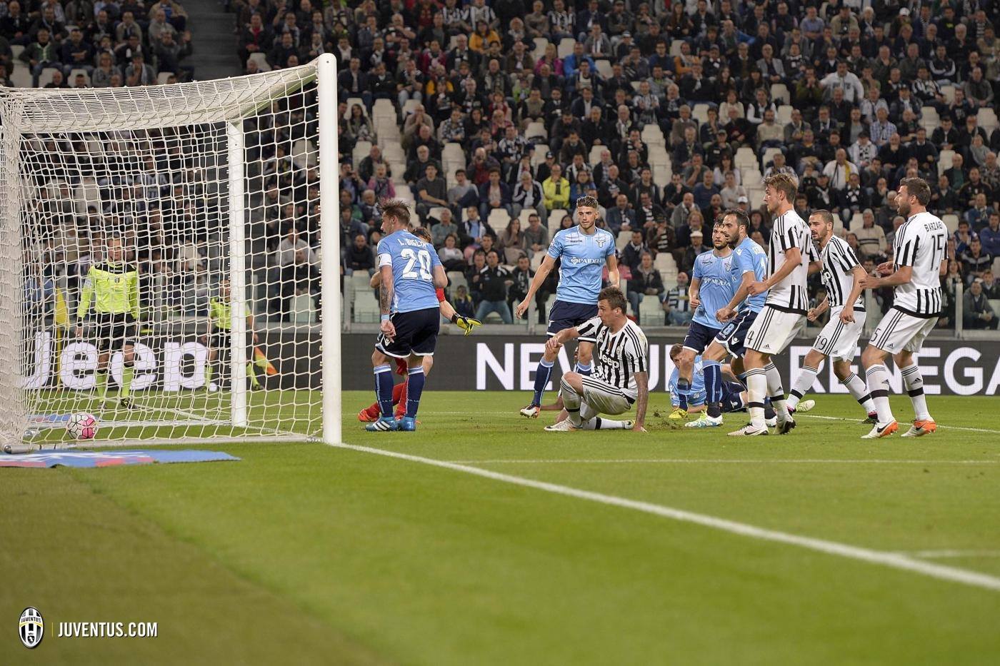 Туринцы постепенно всё же завладели игровой и территориальной инициативой, но было заметно, что напор «Лацио» заставляет игроков Аллегри чувствовать себя на поле не вполне комфортно. Впрочем, «Ювентус» продолжал наращивать преимущество. На восемнадцатой минуте матча Манджукич мощным ударом с подкруткой пытался послать мяч в ближний верхний угол, но в итоге футбольный снаряд облизал сетку ворот с внешней стороны. Две минуты спустя Погба вышел практически на рандеву с голкипером, умудрившись не реализовать момент. Ещё через минуту поймавший кураж Маркетти вновь не позволил забить Дибале, и опять с близкой дистанции.