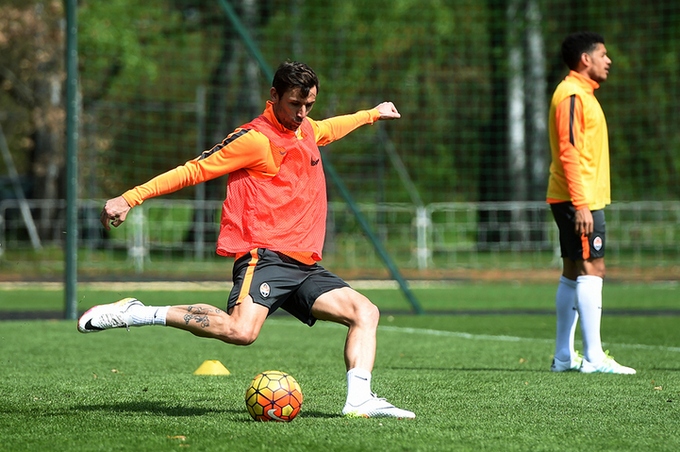 За несколько часов до выезда в аэропорт «Шахтер» провел тренировку. Традиционно она состоялась на олимпийской базе «Святошин». Команда занималась чуть меньше часа, включая разминку, двухстороннюю игру и отработку ударов по воротам. Все футболисты в строю. За исключением молодых Андрея Борячука, Гиорги Арабидзе и Александра Зубкова, которые отправились в расположение дубля.