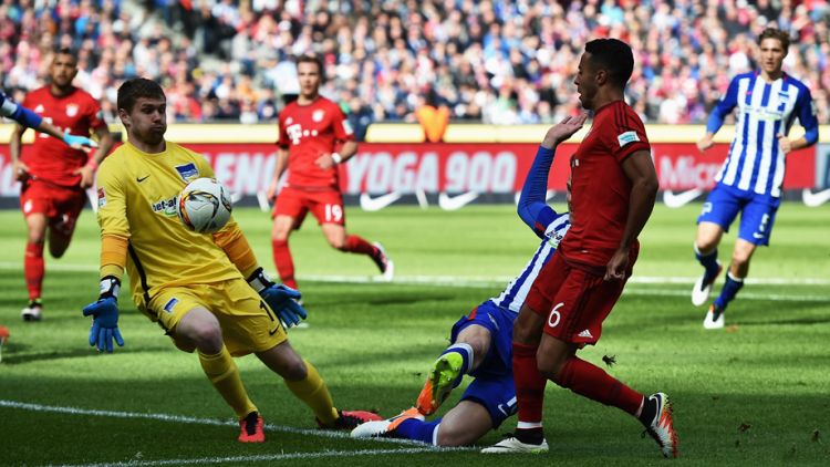 Пеп Гвардиола накануне важного матча в полуфинале Лиги чемпионов против «Атлетико» дал отдохнуть нескольким своим лидерам, отрядив в центр обороны мало играющего Сердара Таски, едва восстановившегося после травмы Мехди Бенатия, и кинув в бой Рафинью и Марио Гетце. По сравнению с последним матчем Гвардиола сделал в стартовом составе своей команды 7 замен. Первый тайм прошел в упорной борьбе при небольшом преимуществе гостей, однако во второй половине игры класс мюнхенского клуба взял верх. Сначала очередной гол на свой счет записал Артуро Видаль, который классно пробил по центру из-за пределов штрафной, а под занавес поединка долгожданный гол забил Дуглас Коста, который провел отличный поединок. Экс-игроку донецкого «Шахтера» удался великолепный удар с 25-ти метров с левого фланга в дальнюю «девятку» ворот - Крафт ничем не смог помочь.