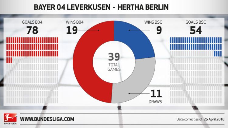 В матче первого круга «Герта» с минимальным счетом обыграла «Байер» - 2:1, а в том поединке голами отличались Владимир Дарида и Энтони Брукс в составе столичного клуба и Чичарито в составе гостей. К слову, с 17-й минуты того матча «Байер» играл в меньшинстве после удаления Себастьяна Боениша. На «БайАрене» хозяева в последний раз обыгрывали «Герту» в августе 2014-го года, а вот «старая дама» не знает радости побед в Леверкузене с октября 2008-го года. В 9-ти последних матчах против «аптекарей» «Герта» добыла всего одну победу. Еще в 25-м туре «Герта» опережала «Байер» на 6 очков, а сейчас отставание берлинского клуба от леверкузенского составляет 5 очков.