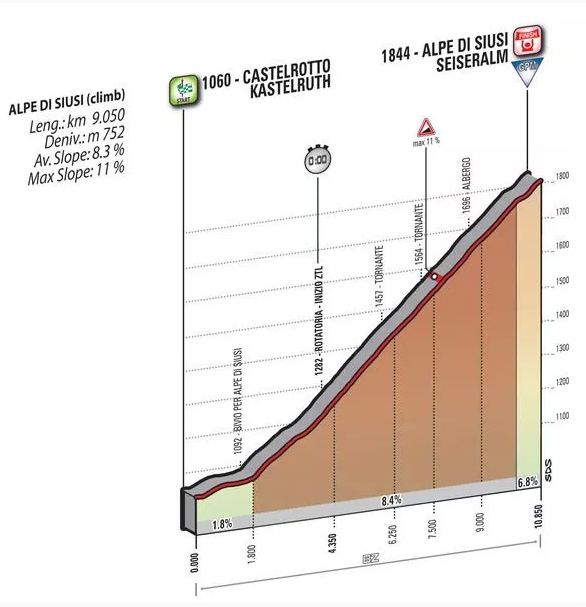 22 мая, этап 15, Castelrotto – Alpe di Siusi, 10,8 км (разделка)