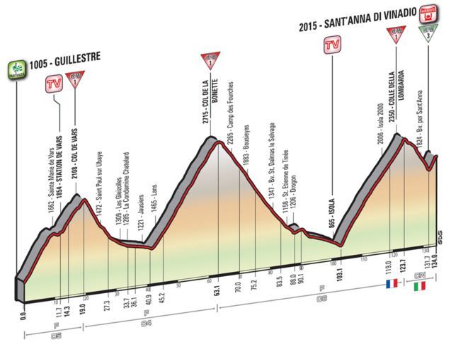 Традицией Giro d'Italia является зрелищный горный этап в предпоследний день гонки, который обязательно содержит одну из самых знаковых гор. После того, как Мортроло и Стельвио (2012), Tre Cime di Lavaredo (2013), Монте Зонколан (2014) и Колле делле Финесте (2015) пришло время для Col de la Bonette. Именно здесь должен определиться победитель Джиро, если, конечно, кто-то не растерзает всех ранее.