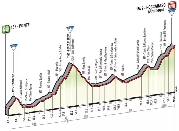 В отличие от Тур де Франс, Джиро д'Италия и Вуэльта Испании предлагают фаворитам общей классификации уже в первую неделю гонки горные этапы. Ситуация не поменяется и в этом году. Этап из Ponte в Roccaraso короткий и содержит не очень крутые горы, но не дает много места для возможного восстановления после длительного перелета. В этот день нельзя выиграть, но именно здесь могут появиться первые неудачники, которые потеряют шансы на итоговый успех.