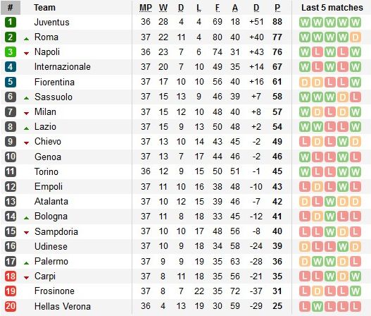 «Сассуоло»: Консильи – Пелузо, Ачерби, Каннаваро, Врсалько – Дункан, Маньянелли, Пеллегрини – Сансоне (Политано, 62), Дефрель (Фальчинелли, 71), Берарди (Гаццола, 88).