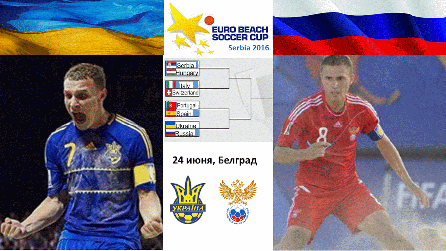 Україна та Росія зустрінуться у чвертьфінальній битві Кубка Європи з пляжного футболу! У Белграді відбулось жеребкування матчів Кубка Європи, який пройде з 24 по 26 червня у Сербії. Протягом трьох днів на турнірі зіграють вісім найсильніших команд пляжного футболу нашого континенту. Отже, жереб звів дворазових чемпіонів світу росіян саме з нашою командою. І це буде перший офіційний матч між командами за всю історію! У 2011 році ми грали з російською командою товариський матч у столичному Гідропарку і тоді перемогли з рахунком 3:2. Але то був неофіційний матч, а зараз на кону буде стояти перепустка у півфінал Кубка Європи! Відео найкращих моментів цього пам’ятного для всіх матчу: