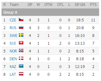 Россия же поднялась на второе место в группе «А». Впереди – матчи со Швейцарией, Норвегией, Швецией. Команде Знарка по силам взять 9 очков. А если случится осечка чехов, то возникнет шанс даже на первое место…