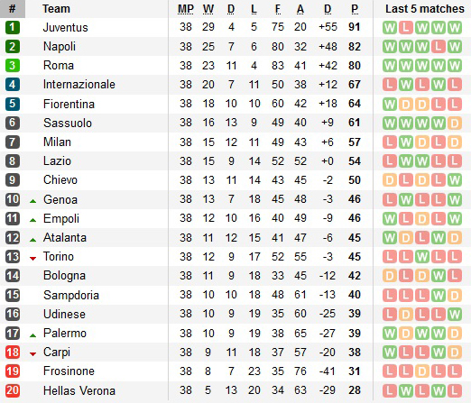 Второе место Наполи, Европа для Сассуоло и вылет Карпи