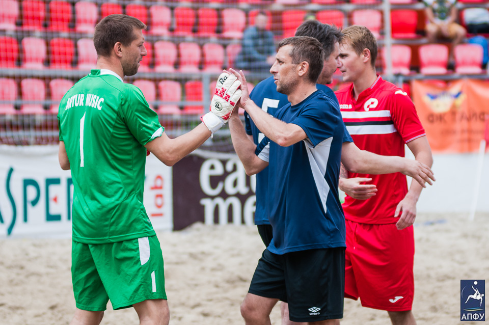 В матче за бронзу «Артур Мьюзик» обыграл «Евроформат» 4:3 и занял третье место на турнире. Все решилось за три минуты до окончания основного времени матча – Ярослав Аксенов точным выстрелом вывел «музыкантов» вперед. И тут же Никита Шклярук заработал пенальти, четко его реализовал и это уже - 4:2! За минуту до финального свистка Евгений Рябчук до минимума сократил счет, но спасти игру «Евроформату» не удалось. «Артур Мьюзик» занимает третью строчку на турнире и через пять дней вылетает в Италию на Лигу Чемпионов пляжного футбола.