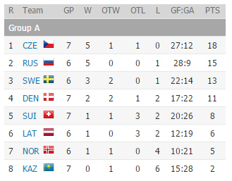 Закончился же матч со счётом 5:4, когда Шнибергер дальним броском всё-таки забил третий гол чехам. А в самой концовке Андригетто положил шайбу в сетку. Но как забить два гола за 25 секунд до финальной сирены? Тренер сборной Чехии Владимир Вуйтек хлопнул по руке своего друга и помощника Томаша Шпачека. Кстати, пан Владимир в этот день отмечал своё 69-летие. Команда преподнесла ему прекрасный подарок. Отлично поработала на групповом этапе. Выиграла шесть матчей из семи. Потеряла очки только с Латвией (одно) и Данией (два). Заняла первое место в группе и теперь в четвертьфинале сыграет со сборной США. Причём в Москве.