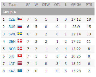 Турнирная таблица группы А: