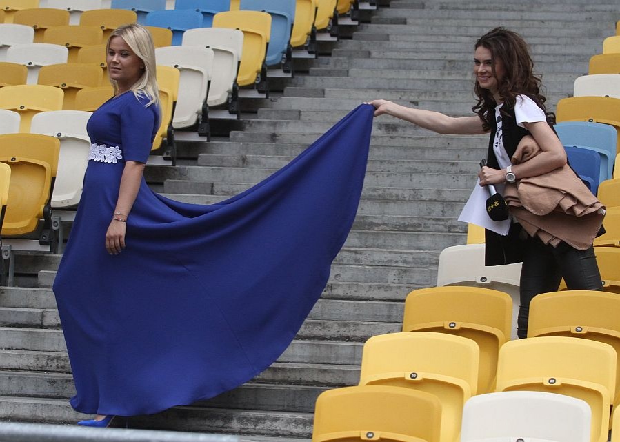 В субботу на главной арене страны – НСК «Олимпийский» – жены футболистов сборной Украины провели фотосессию в рамках поддержки нашей национальной команды накануне старта чемпионата Европы во Франции.