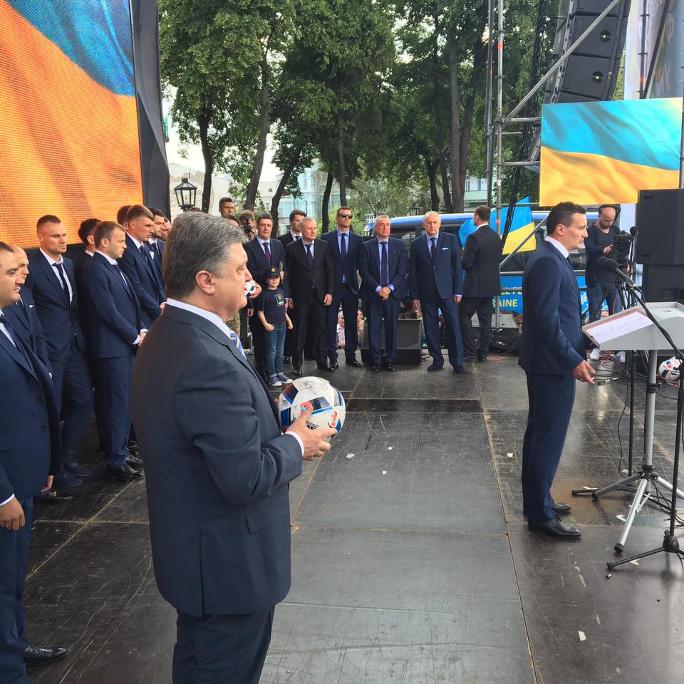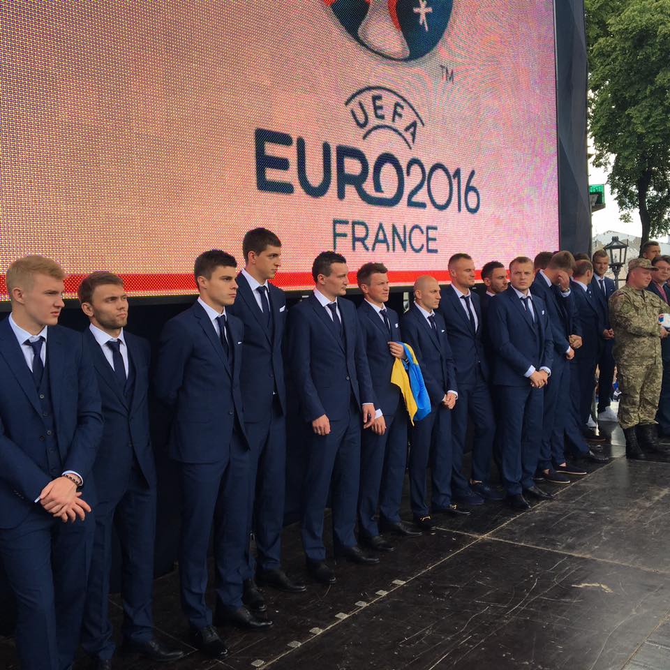 Сборную Украины торжественно проводили на Евро-2016. На Михайловской площади в Киеве команду встречали болельщики, Президент Украины Петр Порошенко и министр молодежи и спорта Украины Игорь Жданов. После напутственных слов и уверений в абсолютной поддержке, украинские сборники пообещали сделать все возможное, чтобы достойно представить Украину на чемпионате Европы.