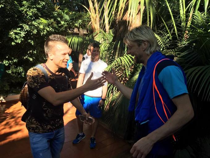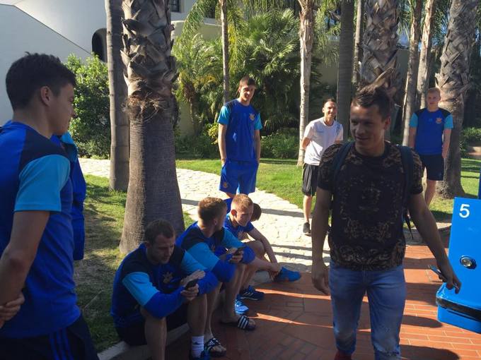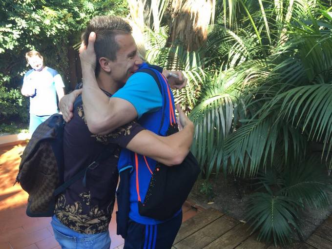 Украинский полузащитник Евгений Коноплянка в понедельник присоединился к партнерам по сборной, которые тепло встретили побратима, поздравив его с завоеванием Кубка Лиги Европы.