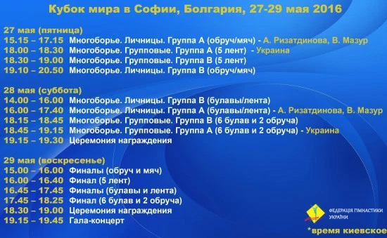 На этапе Кубка мира Украину представят Анна Ризатдинова, Виктория Мазур и групповые.