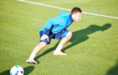 Збірна України провела перше тренування на острові Сардинія, де розпочала підготовку до фінального турніру Євро-2016. Заняття, що відбулося на футбольному полі готельного комплексу «ForteVillage», носило відновлювальний характер.