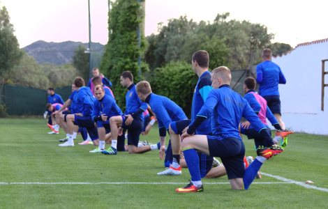 Ввечері температура у місці, де розташувалися «синьо-жовті» опускається до 15-17 градусів (вдень – 24-26 за Цельсієм): поруч гори і це дається взнаки. Відтак тренерському штабу знадобилися легкі парадні олімпійки, а гравці займалися із задоволенням, адже спеку під час тренування ніхто не любить.