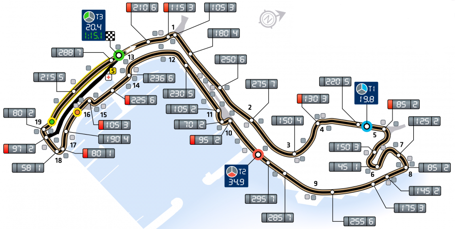 кваліфікація: 1’15.098 (2015, Льюіс Хемілтон) гонка: 1’18.063 (2015, Даніель Ріккардо) |