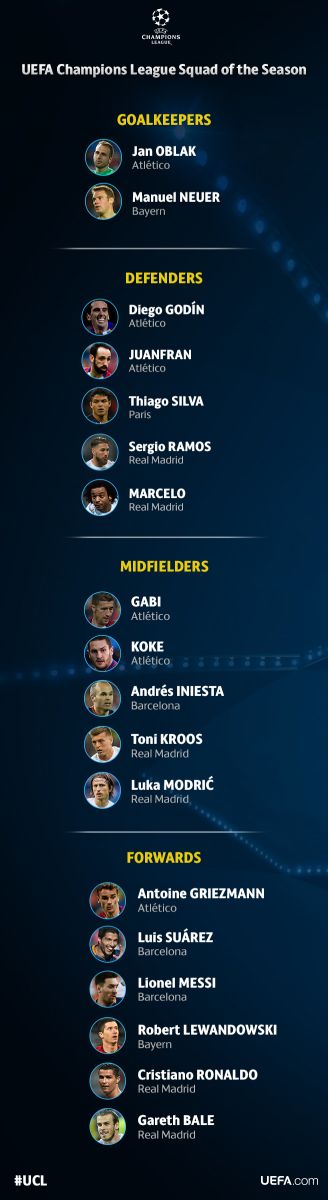 УЕФА объявила сборную сезона Лиги чемпионов