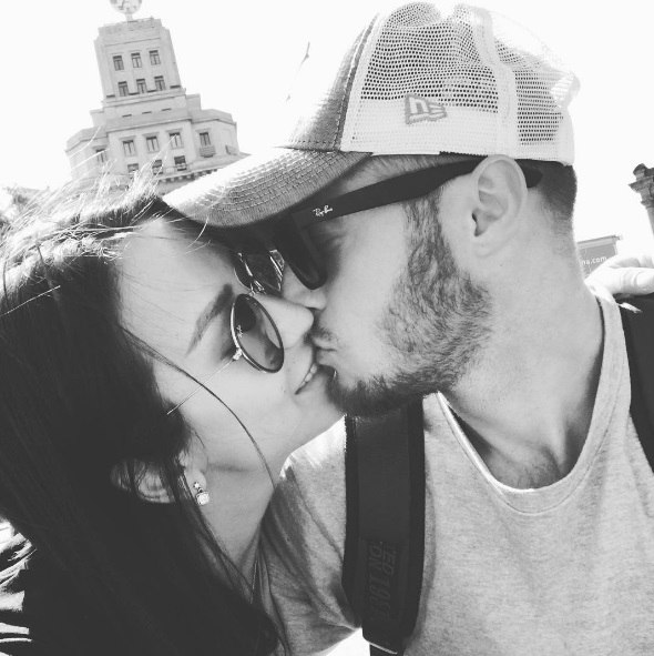 Защитник «Днепра» Виталий Мандзюк с женой в Барселоне.