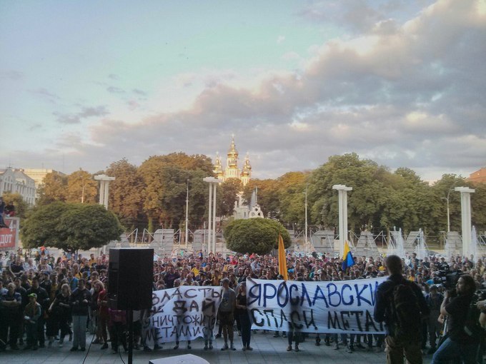 Фанаты развернули баннеры «Власть! Не дай уничтожить Металлист!» и «Ярославский, спаси Металл».