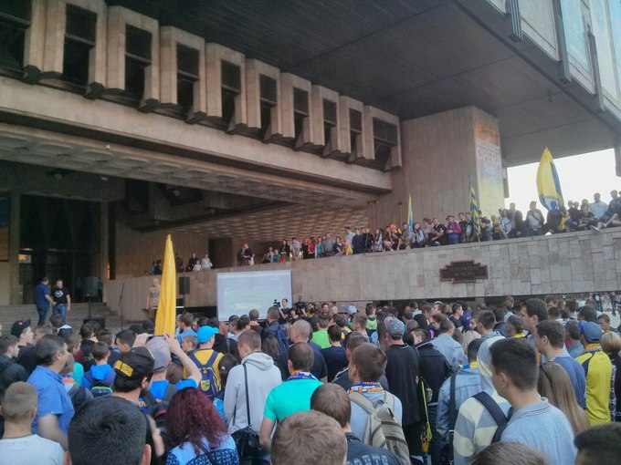 В пятницу в Харькове состоялась акция в поддержку терпящего бедствие «Металлиста». В собрании, прошедшем в центре города перед театром оперы и балета, приняли участие около двух тысяч болельщиков.