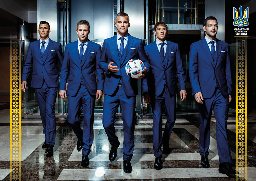 Сборная Украины провела фотосессию в деловых костюмах, которые игроки будут носить во время официальных мероприятий на Евро-2016.