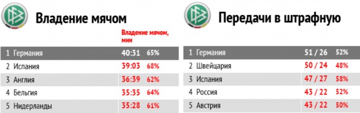 Германия – лидер отборочного турнира по таким показателям, как владение мячом и число передач в штрафную соперника.