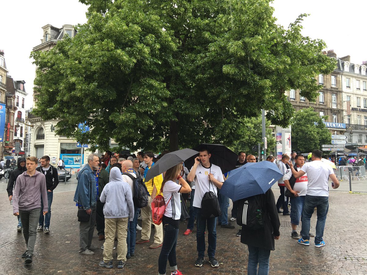 Во французском Лилле, где вечером воскресенья пройдет матч Евро-2016 Украина – Германия, пошел сильный дождь, разогнавший приехавших в город болельщиков по кафе и барам.