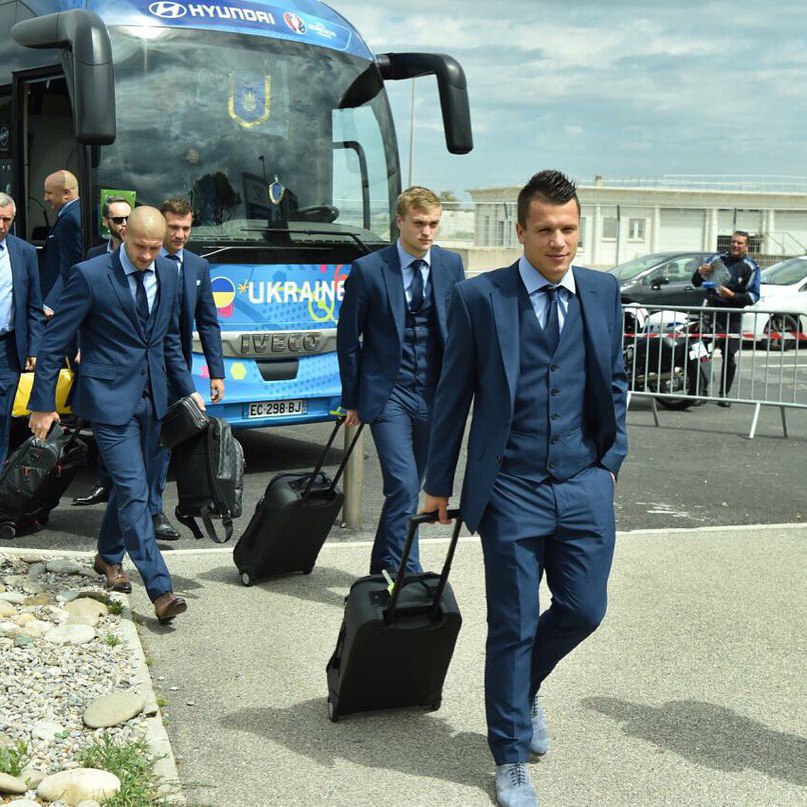 Национальная сборная Украины покинула свой отель в Экс-ан-Провансе и взяла курс на Лион. У украинской команды запланирован переезд на автобусе в Марсел, а уже из местного аэропорта команда Михаила Фоменко на самолете доберется к месту назначения.