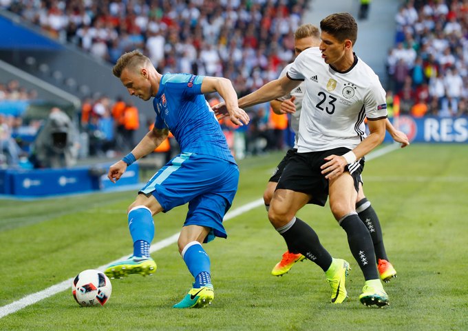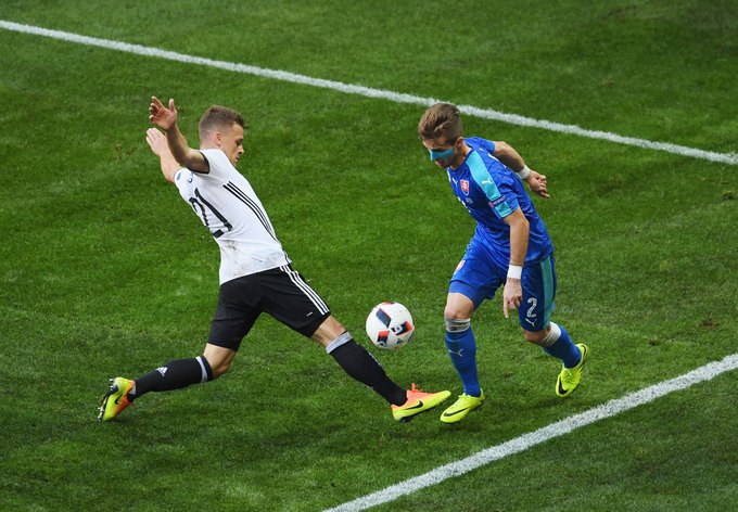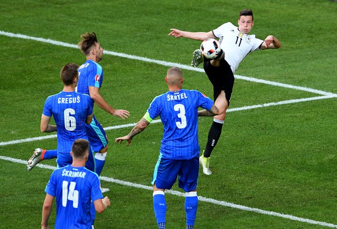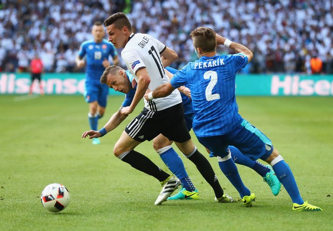 В поединке 1/8 финала Евро-2016 сборная Германии разгромила команду Словакии со счетом 3:0.