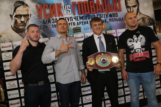 Сегодня в Киеве состоялась пресс-конференция украинского боксера Александра Усика и поляка Кшиштофа Гловацки, посвященная бою, который состоится 17-го сентября в Гданьске.
