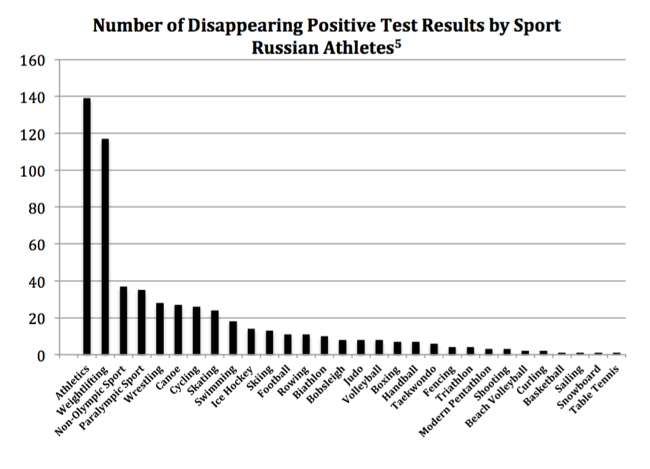 Количество исчезнувших положительных допинг-проб российских спортсменов