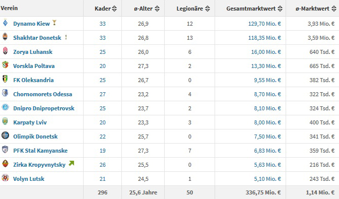 Казалось бы, с оттоком легионеров упадет и средний возраст игроков команд Премьер-лиги... Клубы должны начать больше доверять молодежи и, таким образом, открывать миру новые таланты. Но не тут то было! В сезоне 2012/13 средний возраст футболистов всех участников Премьер-лиги составлял 24.5 года, а спустя четыре сезона он вырос на год и остановился на отметке 25.6 лет. Это притом, что в том же «Днепре», «Черноморце» и «Карпатах» выступает одна молодежь!