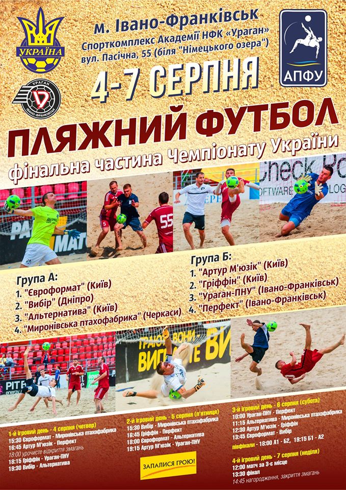4 серпня в Івано-Франківську стартує фінальна частина чемпіонату України з пляжного футболу 2016