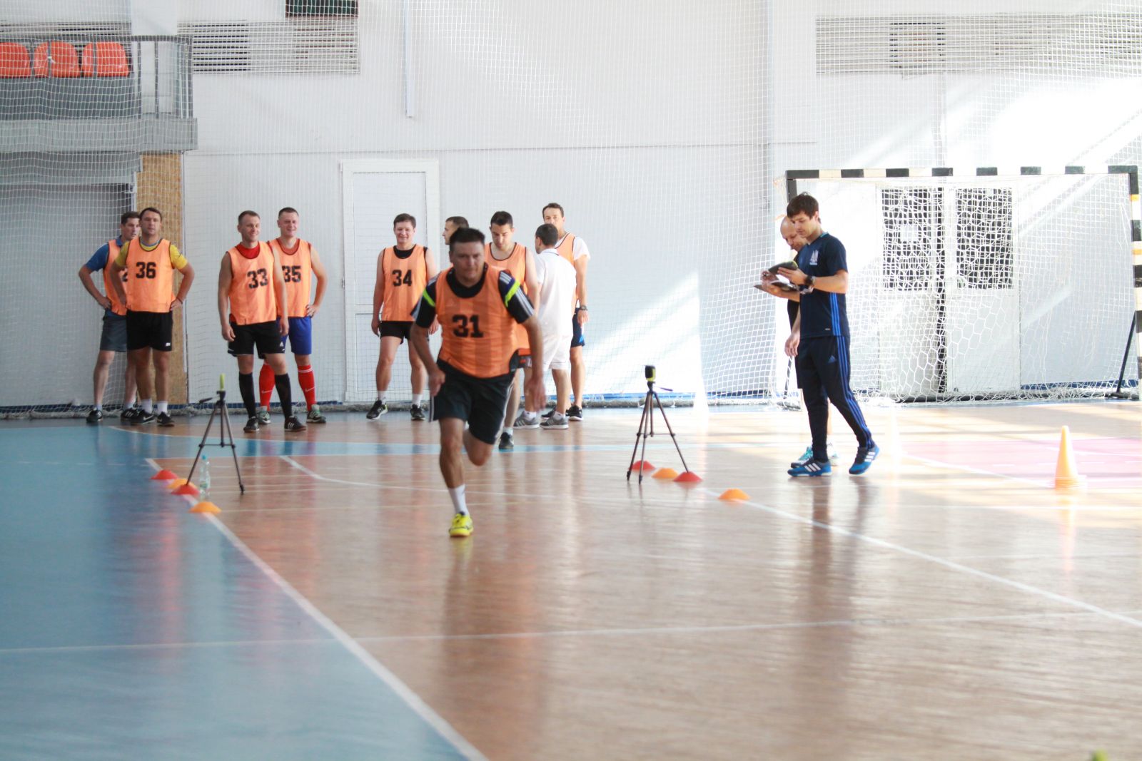 Тестирование арбитров проходила в два захода – первыми испытаниям подверглись молодые арбитры, вторыми – арбитры, большинство из которых уже не один год работали на матчах Экстра-лиги, в том числе и арбитры ФИФА. О том, что нагрузка арбитрам предстояла серьезная, говорит и тот факт, что каждая группа до начала теста проводила организованную 20-тиминутную разминку, которую проводил в прошлом сам известный арбитр, кандидат педагогических наук, доцент Кафедры спортивных дисциплин и методики их преподавания Дрогобычского университета им. И. Франко Роман Проць. Когда же тестирование пошло полным ходом, все результаты поступали в руки руководителей учебно-тренировочного сбора, представителя ФФУ, курирующего арбитраж в футзале, Виктора Дердо и главы Комитета арбитров АФУ Юрия Веремчука.