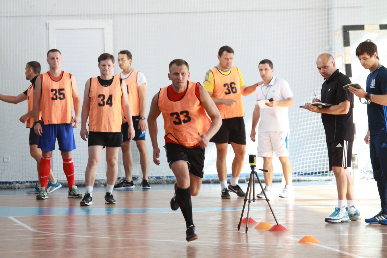 В четверг утром, 4 августа, пока многие киевляне еще собирались на работу, футзальным арбитрам Ассоциации футзала Украины, участникам учебно-тренировочного сбора, который 3-4 августа проходил в столичном Доме футбола, предстояло серьезное испытание – тест на физическую готовность. Накануне на теоретическом занятии глава Комитета арбитров ФФУ Лучано Лучи отметил, что «физическая подготовка арбитра является первым базовым элементом». Так что не удивительно, что уже еще до восьми утра, когда должно было начаться тестирование, все 28 арбитров сконцентрировано разминались в зале НУФВС, или по-простому инфиза, чтобы подойти к сдаче теста в оптимальной физической форме.