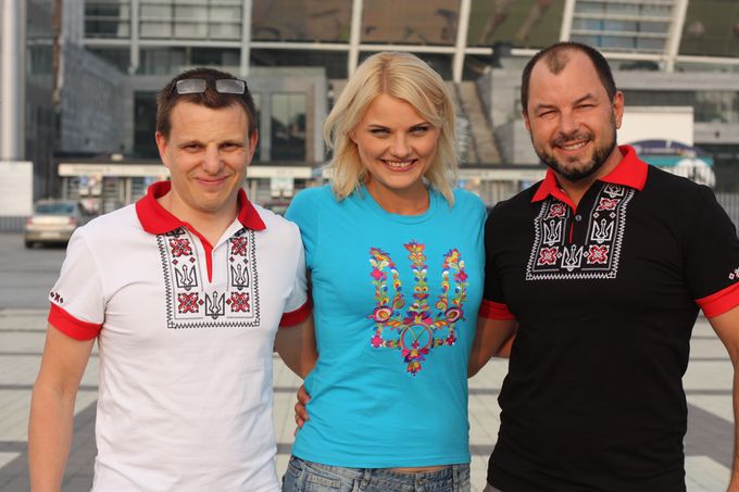 Ведущие олимпийской студии UA:Перший Дарья Кузнецова и Дмитрий Лазуткин (на фото справа) выбрали для себя наши вышиванки. Последняя новинка – женская вышиванка Моя страна (бирюзовая). Вышитый элемент по центру футболки изображен в виде цветущего герба, символизирует нашу веру в процветание и успех Украины. Вышиванка «Героям Слава» и Вышиванка «Слава Нации» пропагандируют объединительную идею. Женская модель «Слава Нации» также доступна по цене 350 гривен.