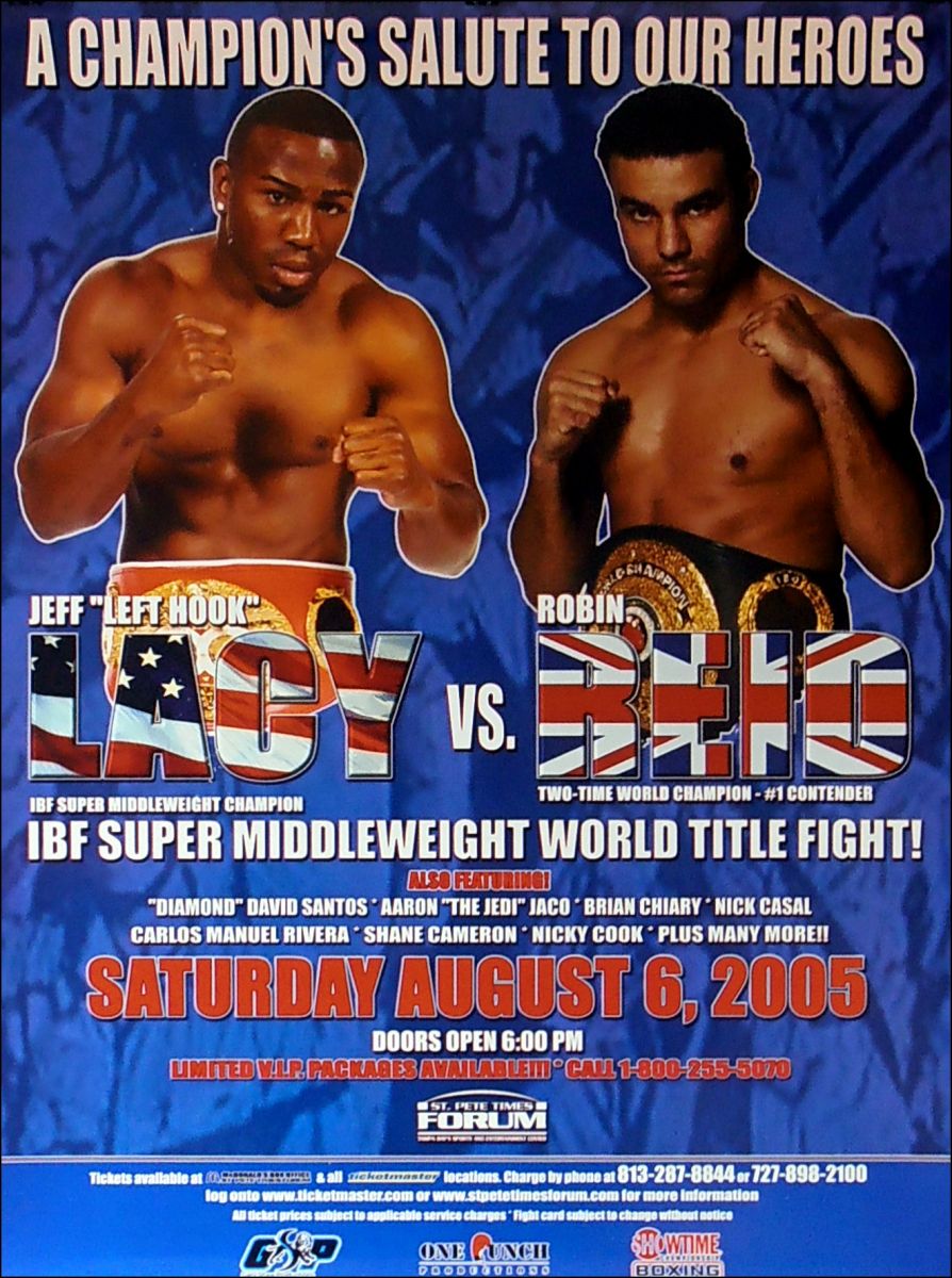 2005 год - арена «St. Pete Times Forum», Тампа, Флорида. Чемпион мира по версии IBF и IBO во втором среднем весе Джефф Лэйси проводит защиту своих чемпионских поясов против Робина Рида. В этом поединке Робин впервые, в своей профикарьере оказался в нокдауне. Джефф сбил его на канвас в пятом раунде. Затем, в шестом и седьмом раундах Рид снова побывал на канвасе. После окончания седьмого раунда секунданты Робина остановили бой.