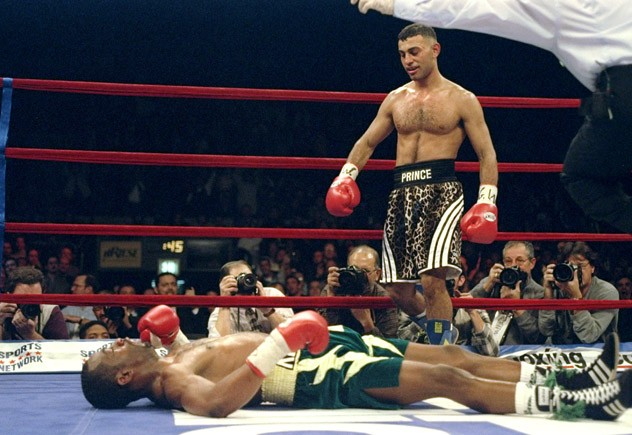 1995 год – на арене “MGM Grand”, Лас-Вегас, Невада, в главном поединке весера бокса, в мир профибокса, после трехлетнего тюремного заключения, возвращается Майк Тайсон. Его соперником становится раздутый проспект Питер Макнили. Поединок продлился всего 89 секунд. ПИтер начал бой весьма агрессивно, но уже на десятой секунде правый боковой Майка сбивает Макнили на канвас. Миллс Лейн отсчитал Питеру нокдаун и бой продолжился. Еще через двадцать секунд Питер навязал Тайсону обмен ударами, но пропустив правый апперкот снова оказывается лицом в канвасе. Чтобы спасти своего подопечного в ринг вбегает менеджер Макнили Винни Вецчиони, что являлось нарушением правил проведения поединка. Рефери Милс Лейн дисквалифицирует Питера Макнили.