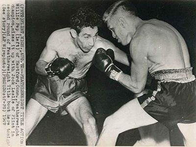1947 год – на «Atwood Stadium», что во Флинте, штат Мичиган, чемпион мира в полулегком весе Вилли Пэп нокаутирует в двенадцатом раунде Джока Лесли, защищая свой чемпионский пояс в пятый раз. По сообщениям очевидцев, Пэп выиграл каждый раунд по нескольку раз, а после того, как Лесли оказался в нокдауне, рефери Кларенс Росен остановил поединок на счете «четыре», хотя мог продолжать его до ста.